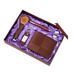 Coffret cadeau de bureau sur le thème des affaires pour hommes montre à quartz portefeuille porte-clés stylo-pour les pères cadeaux de bienvenue